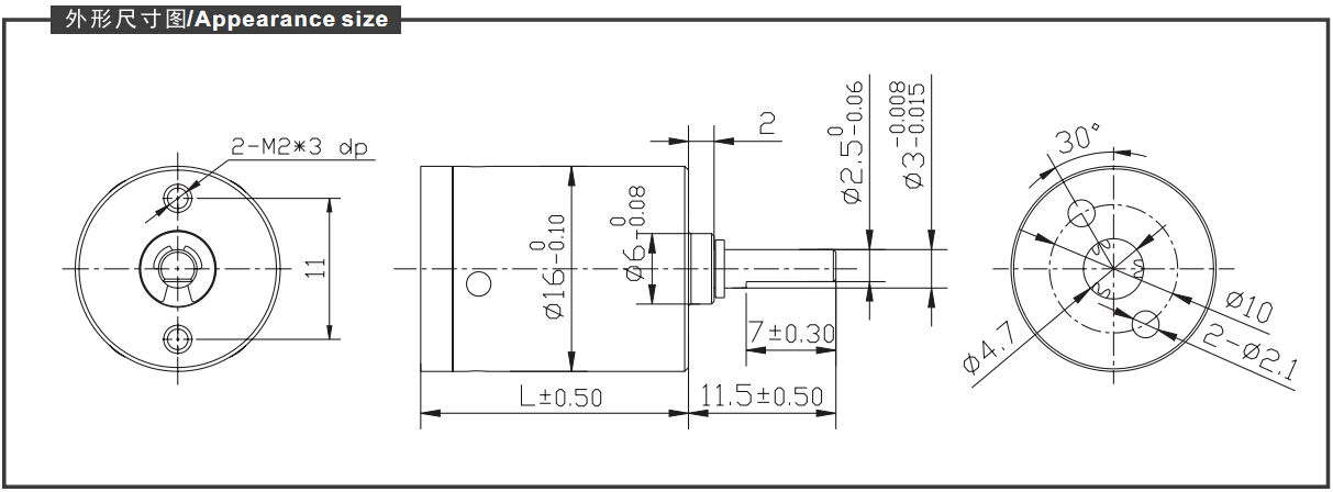 - 1、輸出軸直徑為Φ3.0mm,長度可根據客戶要求定制