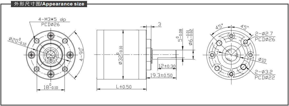 輸出軸直徑為Φ6.0mm,長度可根據客戶要求定制