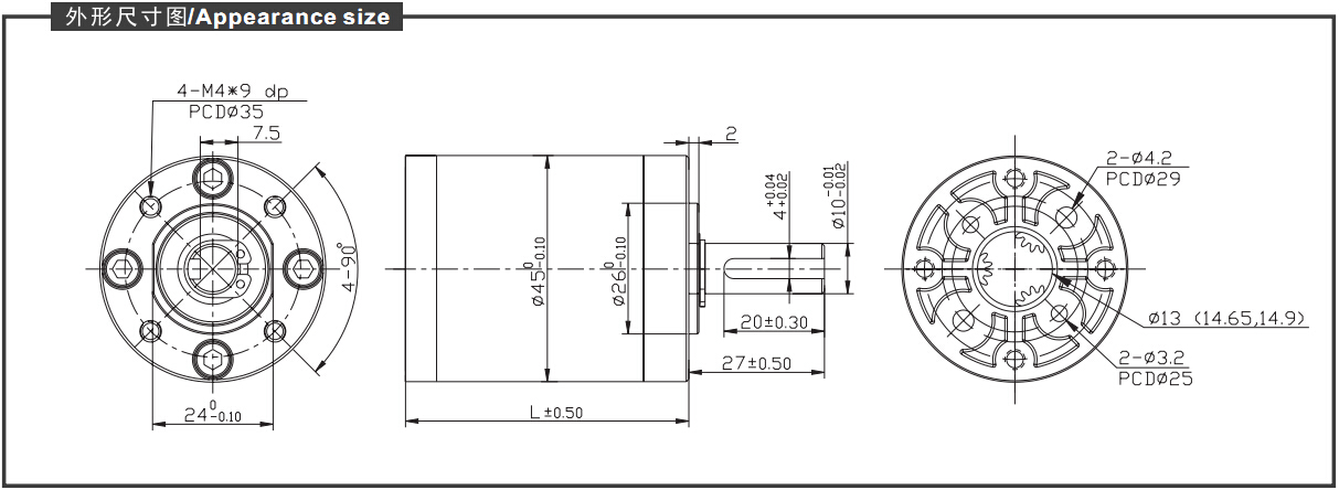 輸出軸直徑為Φ10.0mm,長度可根據客戶要求定制
