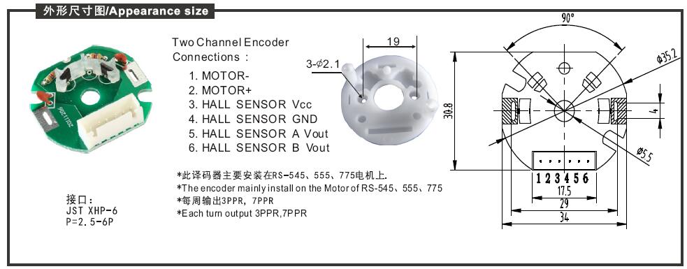 此編碼器主要安裝在RS-545、555電機(jī)上每周輸出3ppr、7ppr